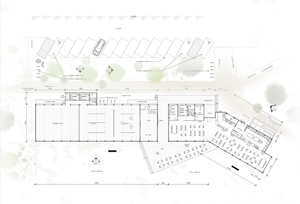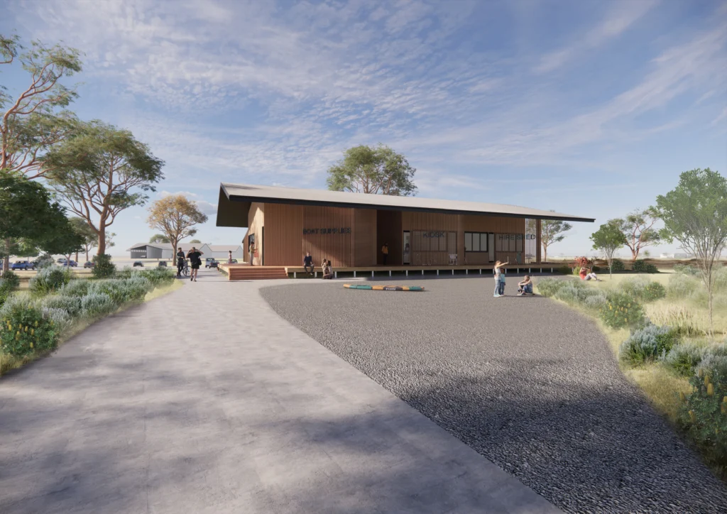 The proposal positions architecture as enabling infrastructure rather than spectacle. Buildings provide shelter, orientation and amenity, while the restored coastal environment remains the defining experience of Mahers Landing.
